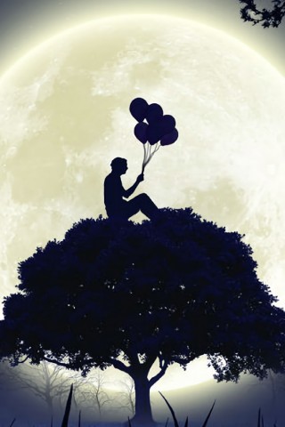 Man sitting on a tree with ballons on his hand HD Wallpaper - Older iPhone & iPod