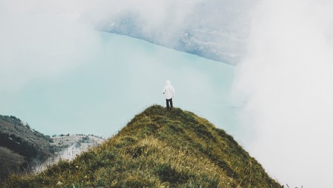 Man standing at mountain peak HD Wallpaper - 480x272 PSP