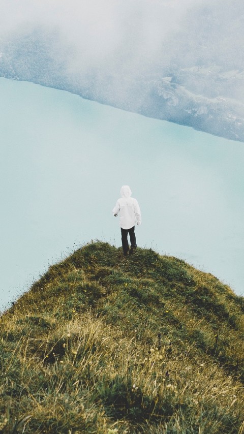 Man standing at mountain peak HD Wallpaper - 480x854