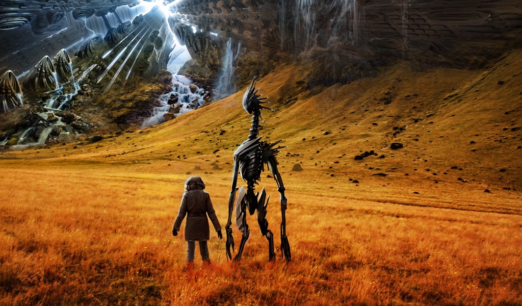 Man standing next to an alien HD Wallpaper - 1024x600