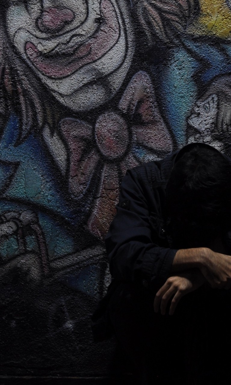 Man standing next to graffiti HD Wallpaper - 768x1280
