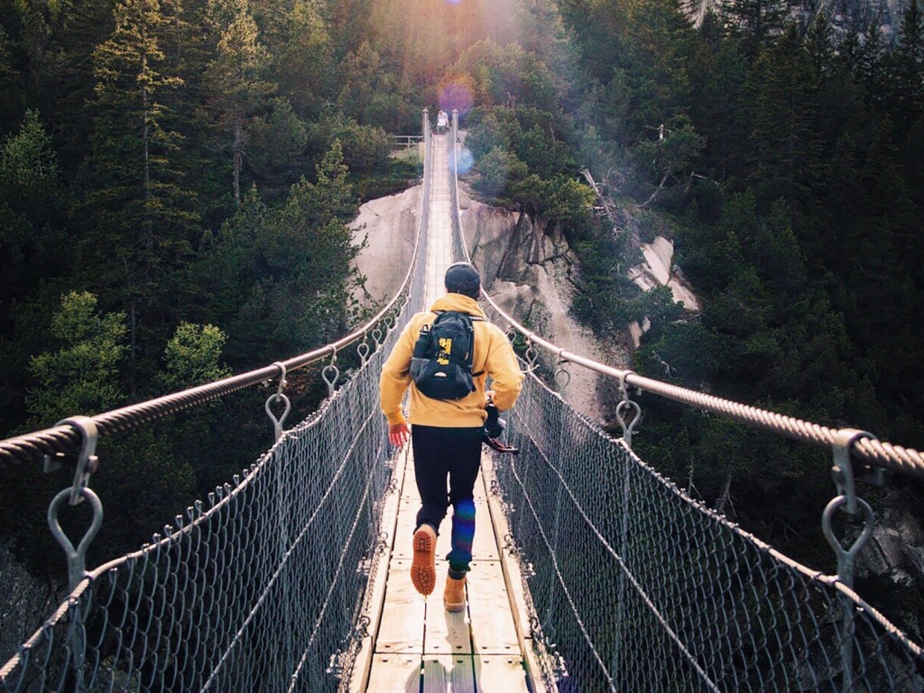 Man walking at Switzerland bridge HD Wallpaper - 1024x768