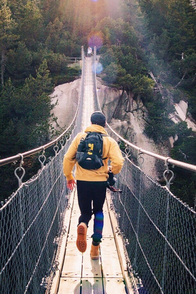 Man walking at Switzerland bridge HD Wallpaper - iPhone 4 / 4S / iPod