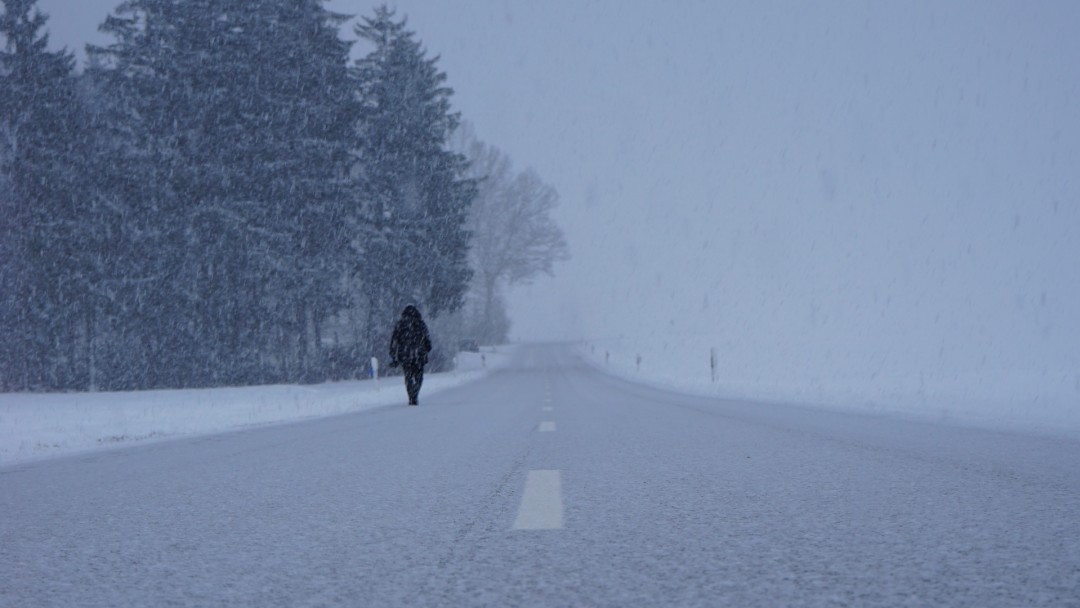 Man walking through snowstorm HD Wallpaper - Google Plus Cover Photo