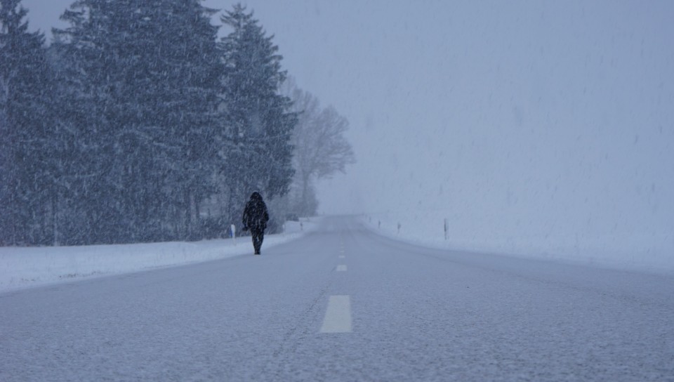 Man walking through snowstorm HD Wallpaper - 960x544 PS Vita