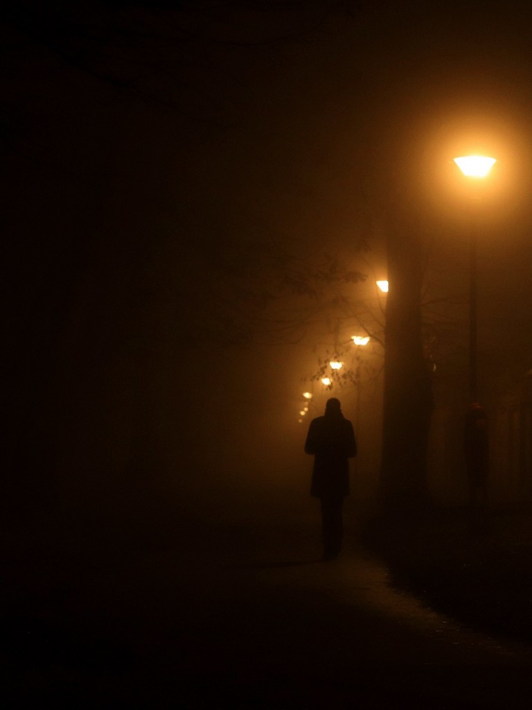 Man walking under street lanterns HD Wallpaper - Non-retina iPad