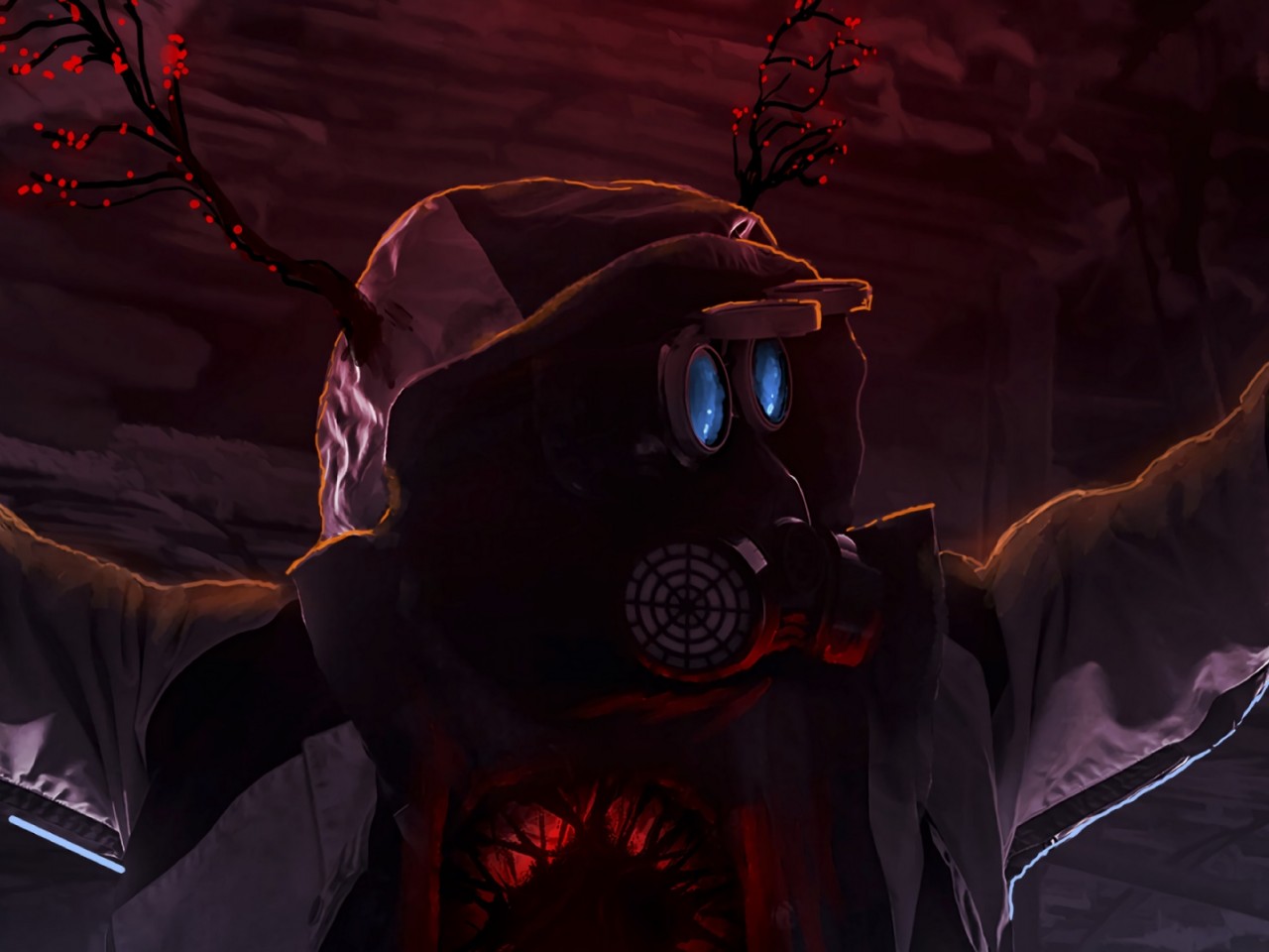 Man wearing a gas mask at the dark HD Wallpaper - 1280x960
