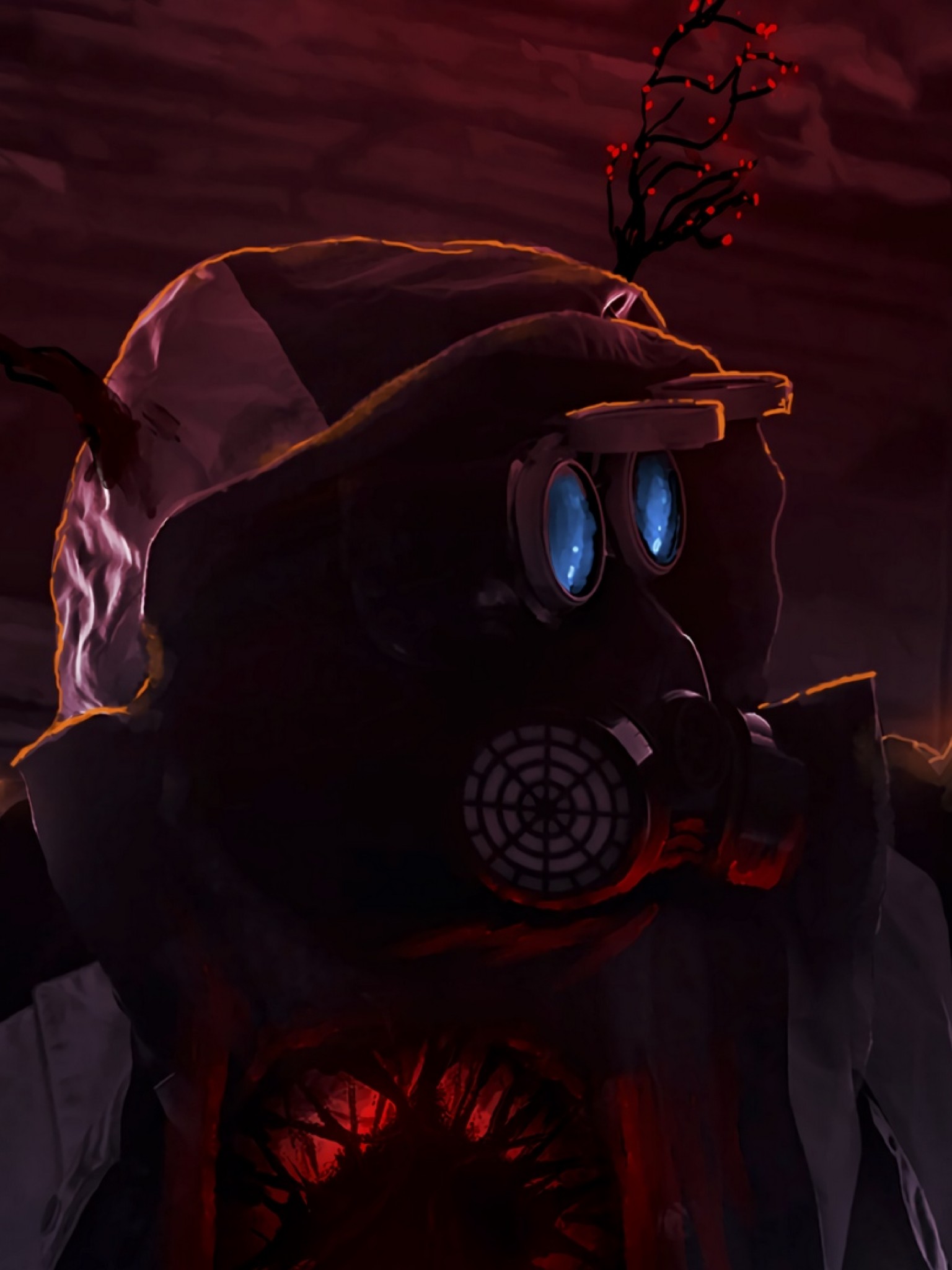 Man wearing a gas mask at the dark HD Wallpaper - Retina iPad