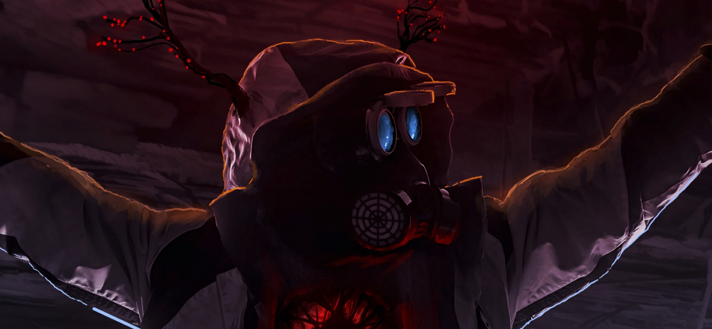 Man wearing a gas mask at the dark HD Wallpaper - iPhone X