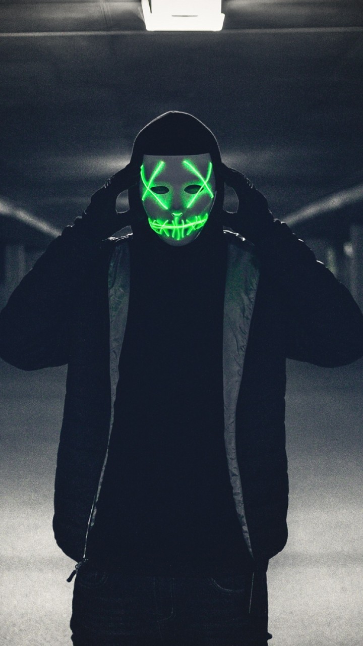 Man wearing a glowing mask HD Wallpaper - 720x1280
