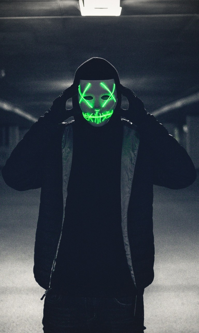 Man wearing a glowing mask HD Wallpaper - 768x1280