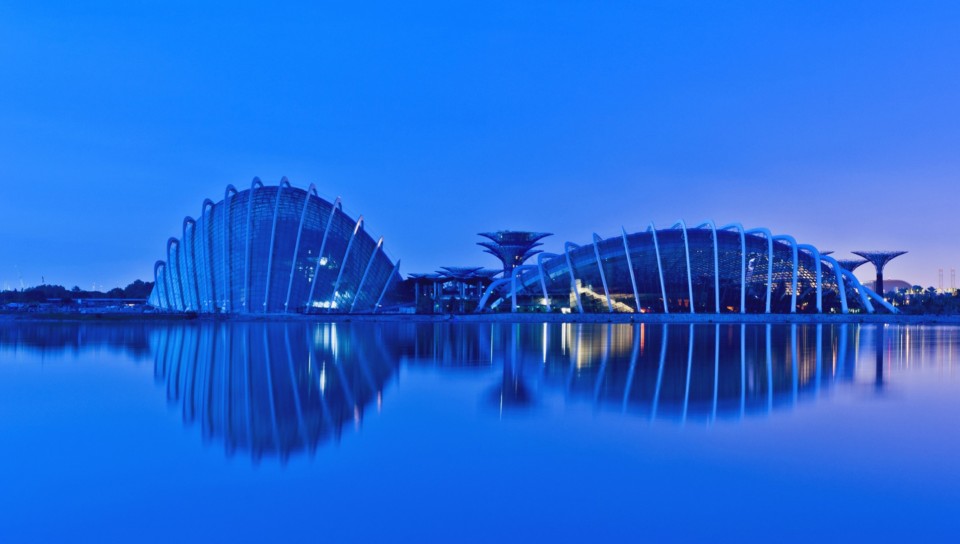 Modern buildings reflected in lake HD Wallpaper - 960x544 PS Vita