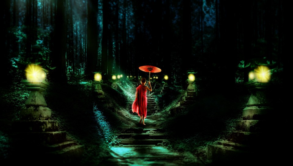 Monk walking on stairs HD Wallpaper - 960x544 PS Vita