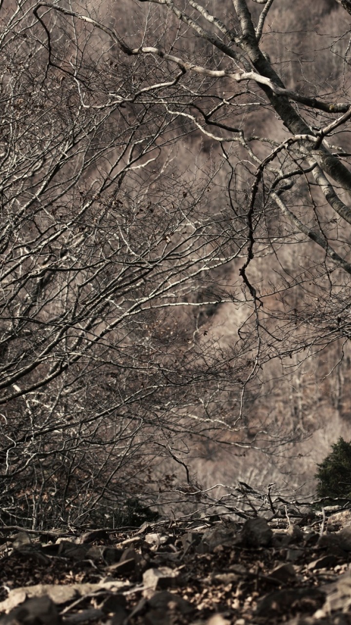 Monochrome image of trees HD Wallpaper - 720x1280