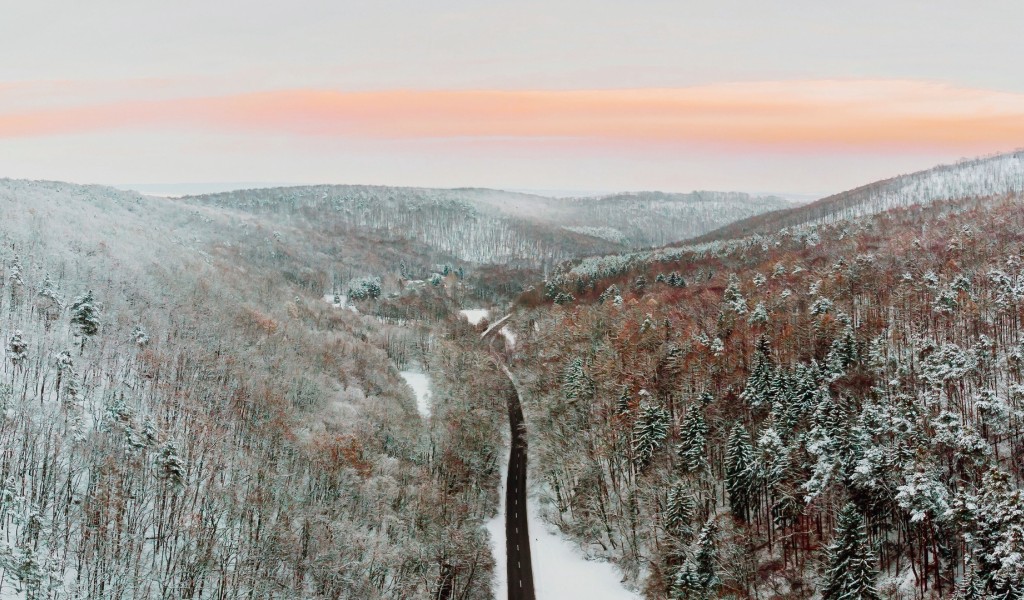 Mountain road aerial view HD Wallpaper - 1024x600