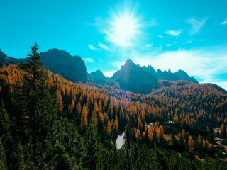 Mountains covered in sun rays HD Wallpaper - 320x240