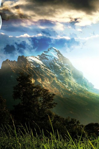 Mountains And Planets 4K Hd Wallpaper for Desktop and Mobiles - Older iPhone & iPod