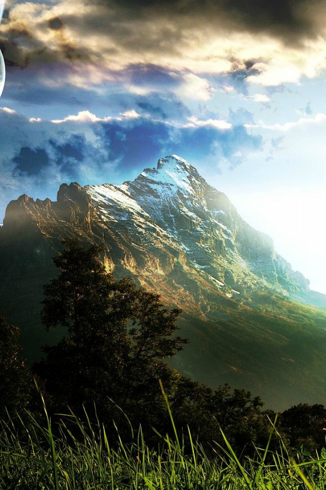 Mountains And Planets 4K Hd Wallpaper for Desktop and Mobiles - iPhone 4 / 4S / iPod