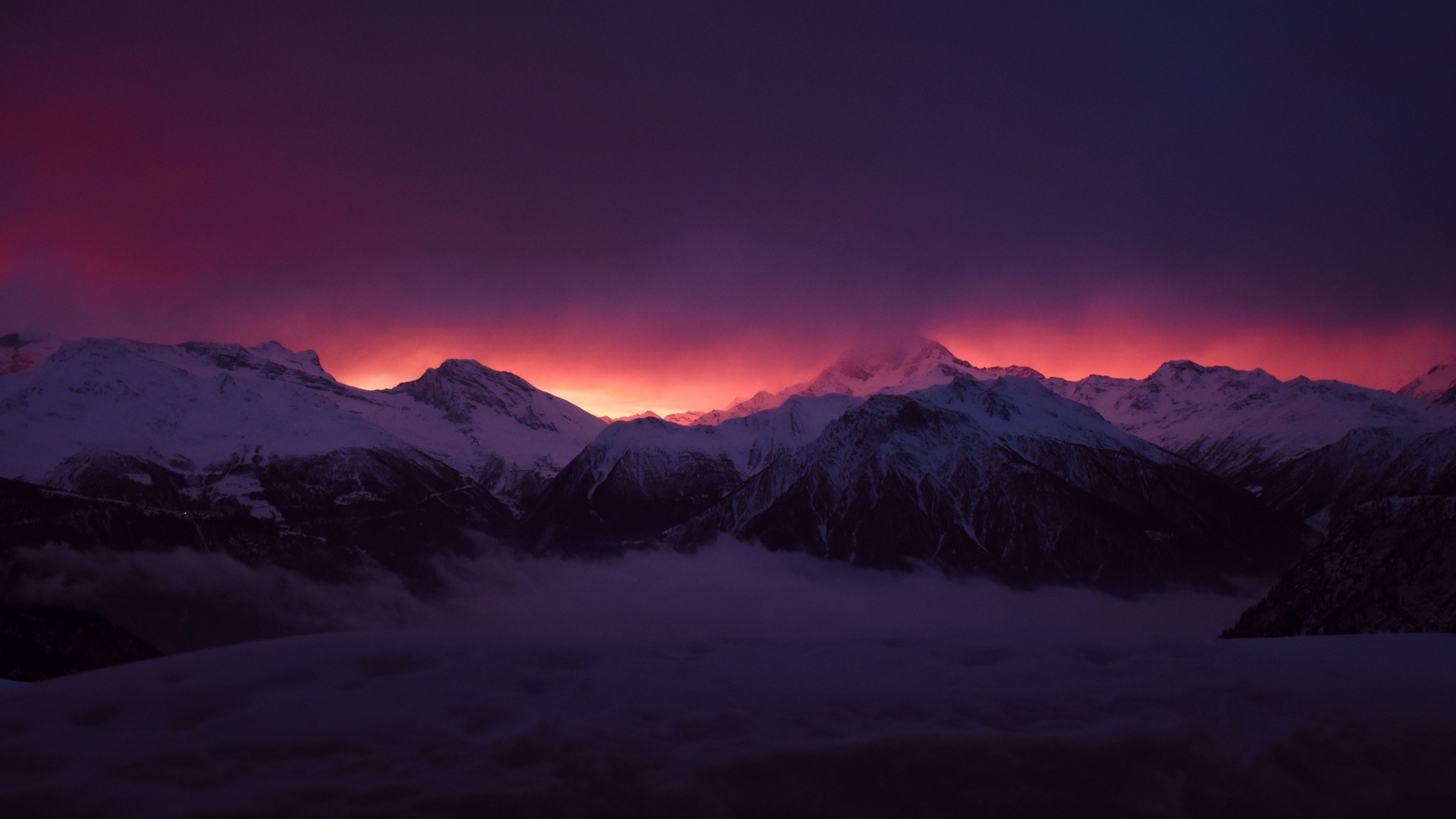 Mountains under a red sky HD Wallpaper - 4K Ultra HD