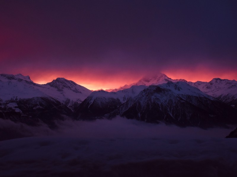 Mountains under a red sky HD Wallpaper - 800x600