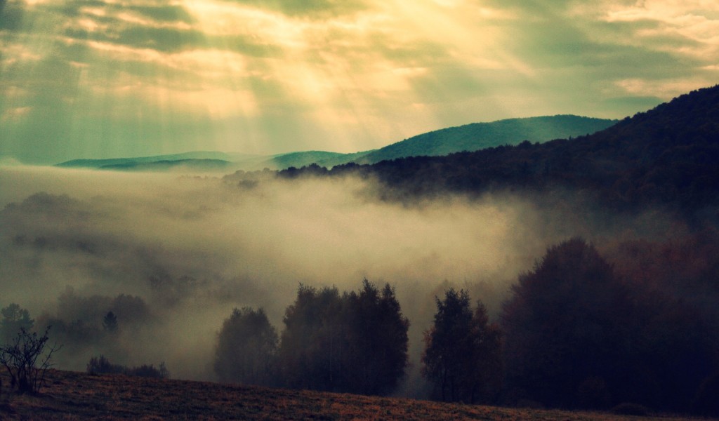 Mountains under clouds HD Wallpaper - 1024x600