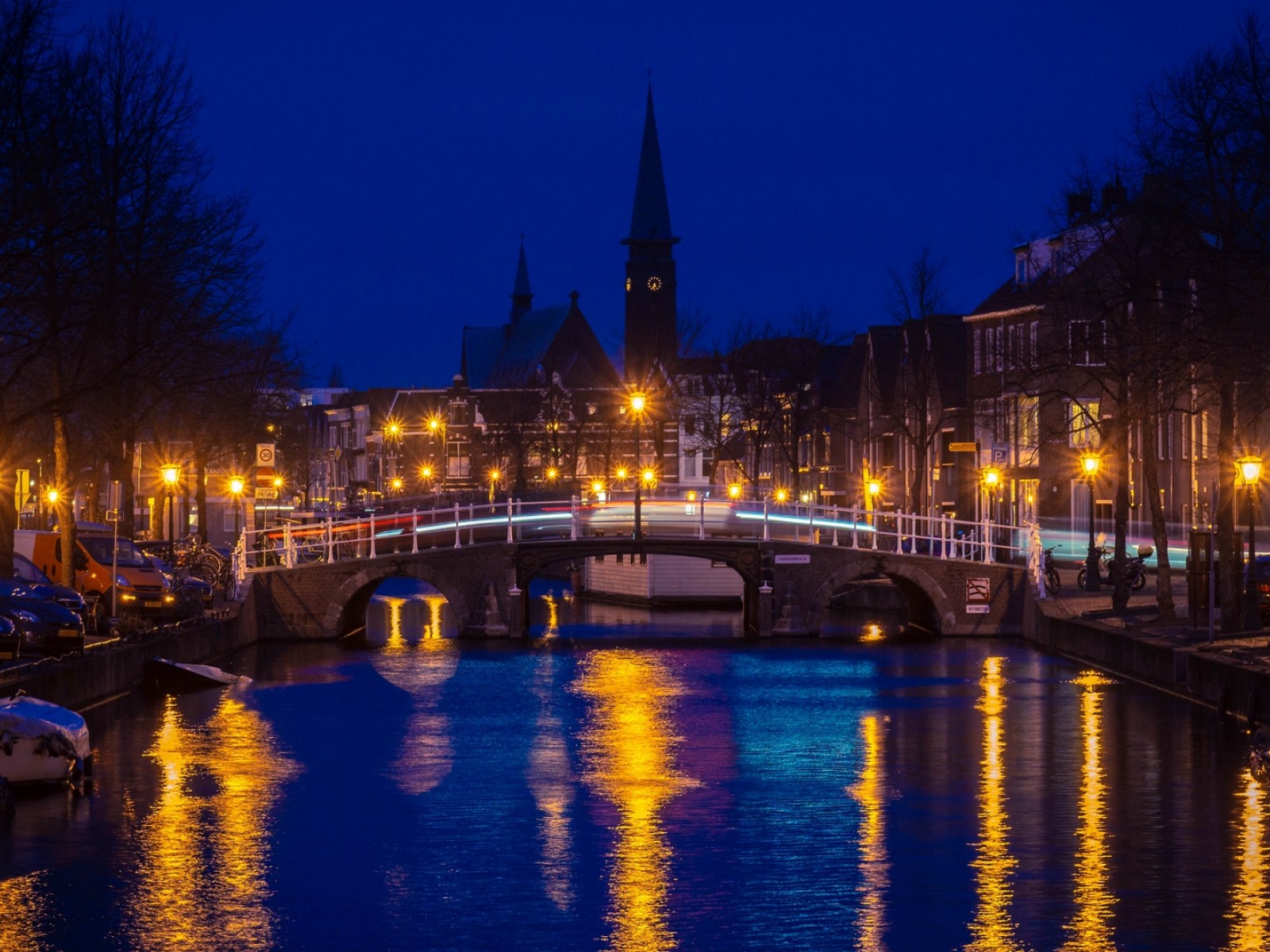 Netherlands bridge at niight HD Wallpaper - 1600x1200