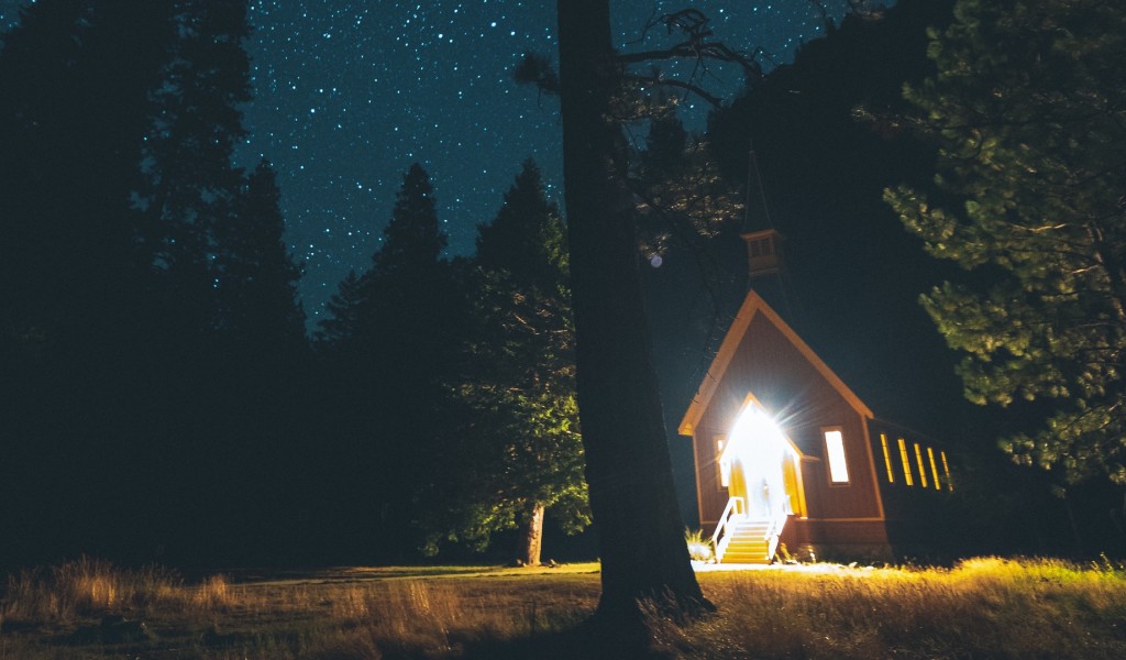 Night at a forest house HD Wallpaper - 1024x600