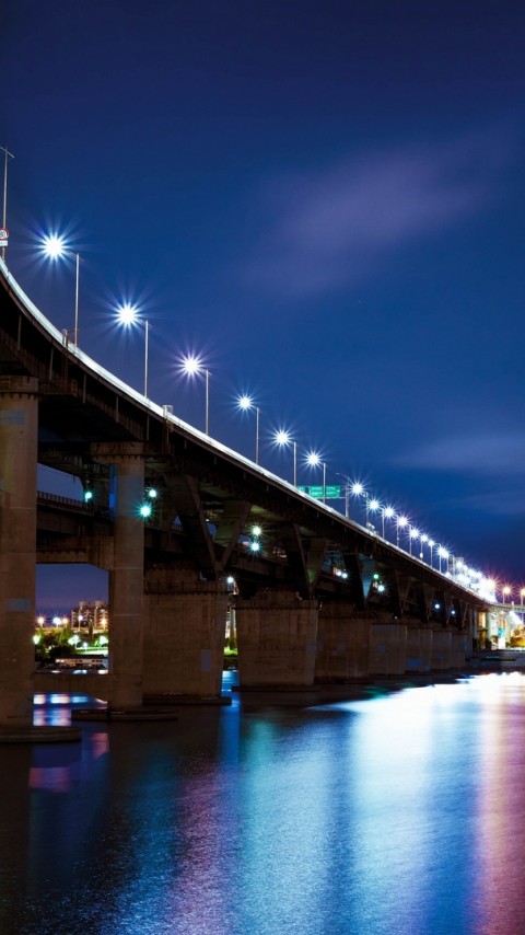 Night city bridge HD Wallpaper - 480x854