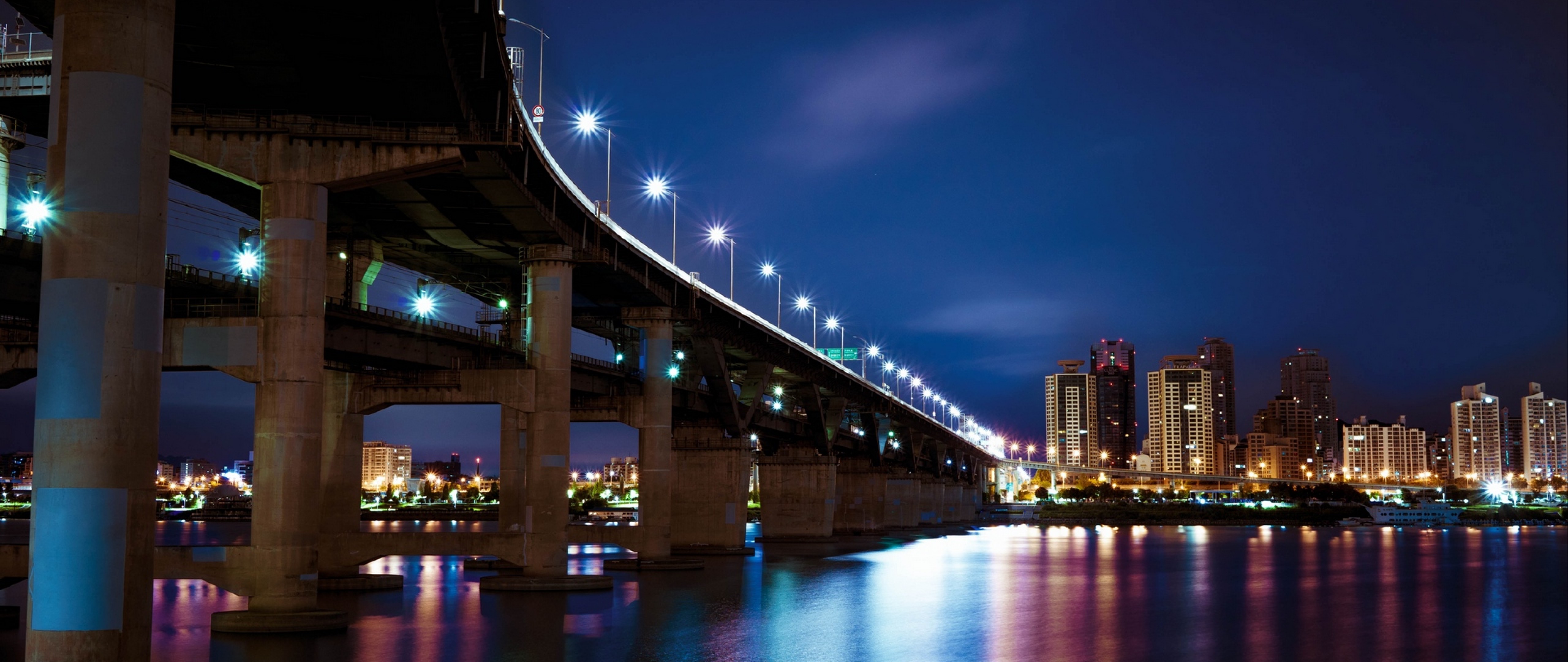 Night city bridge HD Wallpaper - 4K Ultra HD Wide TV