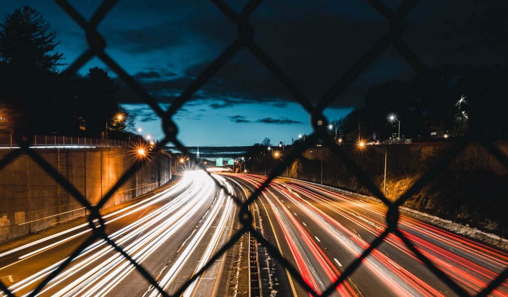 Night city road behind a fence HD Wallpaper - 1024x600