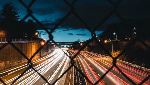 Night city road behind a fence HD Wallpaper - 480x272 PSP
