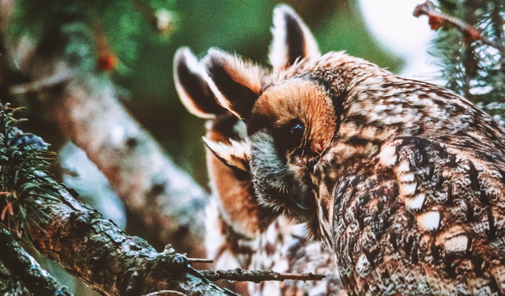 Owl standing at branches HD Wallpaper - 1024x600