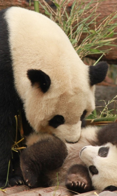 Panda family HD Wallpaper - 480x800