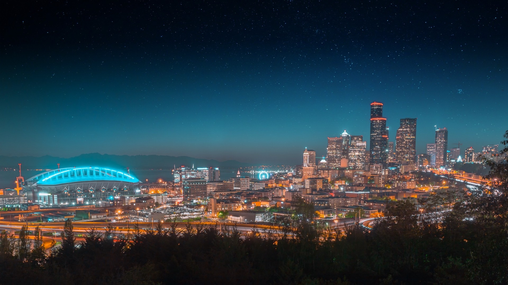 Panoramic view of city at night HD Wallpaper - iPhone 7 Plus / iPhone 8 Plus