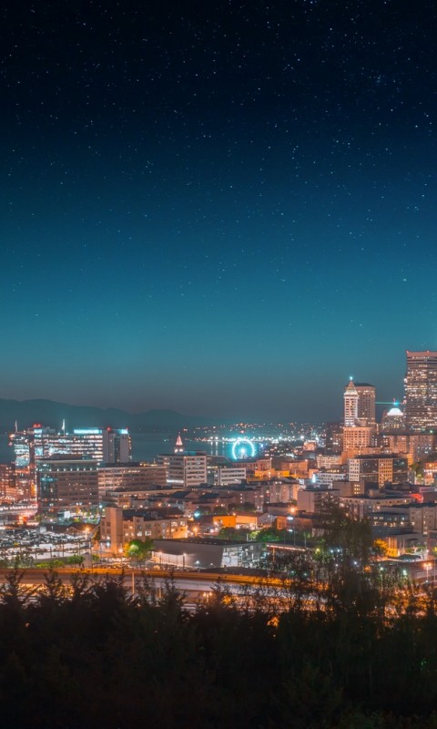 Panoramic view of city at night HD Wallpaper - 480x800