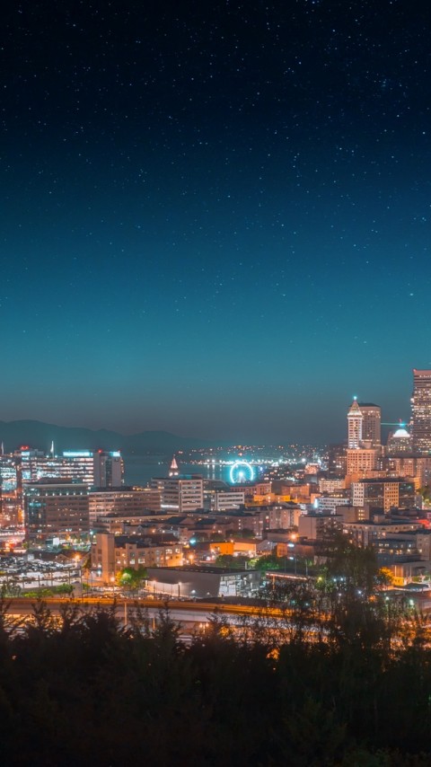 Panoramic view of city at night HD Wallpaper - 480x854