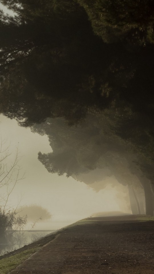 Park covered in fog HD Wallpaper - 540x960