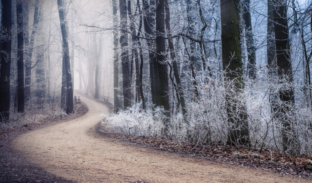 Path trough a forest HD Wallpaper - 1024x600
