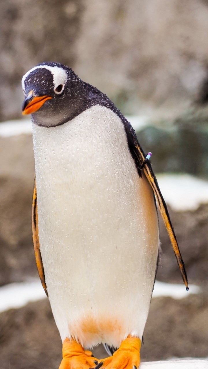 Penguin standing at a stone HD Wallpaper - 720x1280