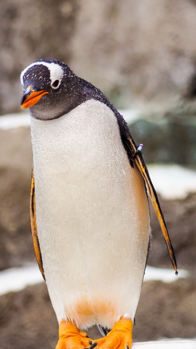 Penguin standing at a stone HD Wallpaper - iPhone 6 / 6S