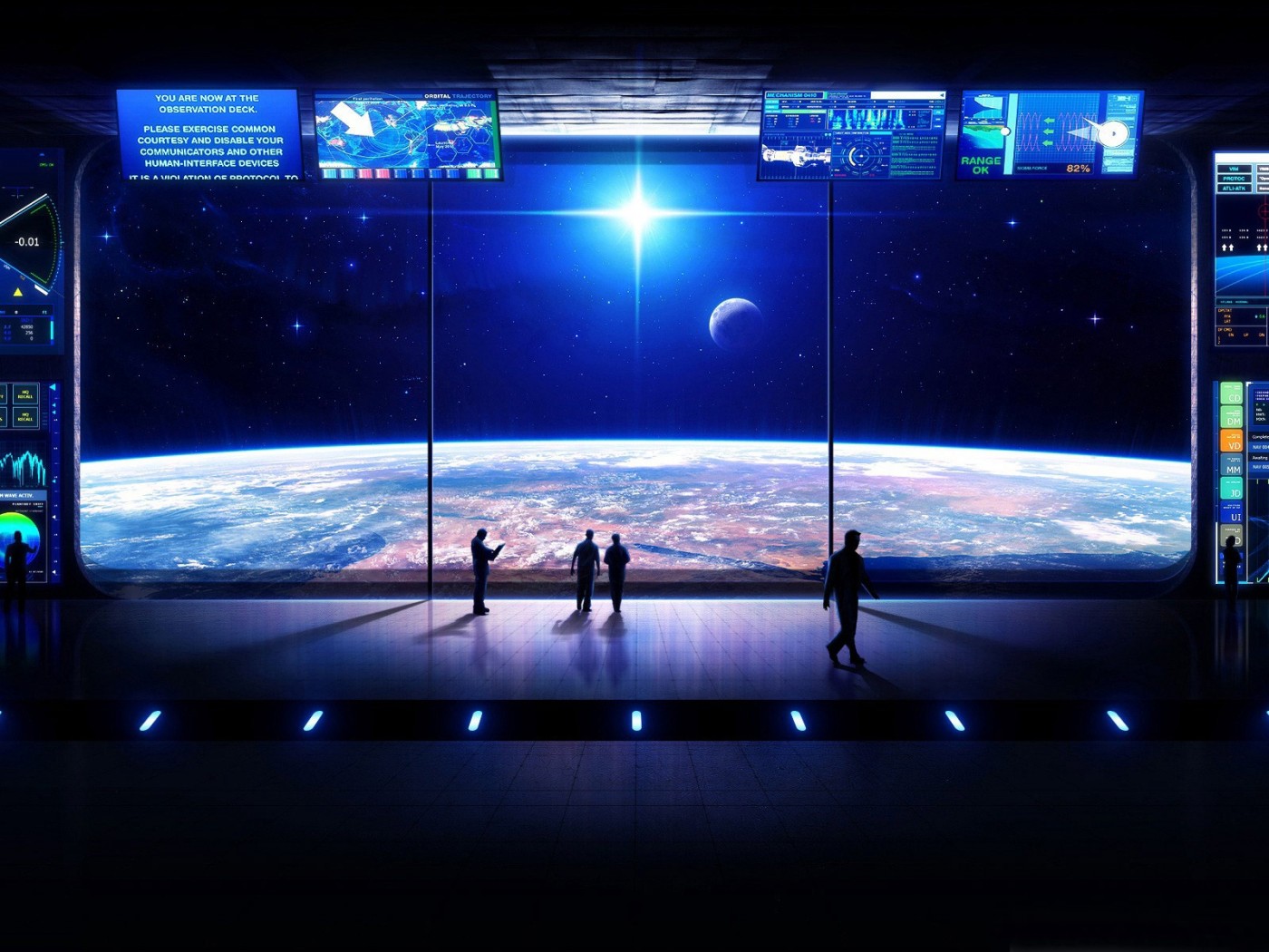 People watching the moon from space HD Wallpaper - 1400x1050