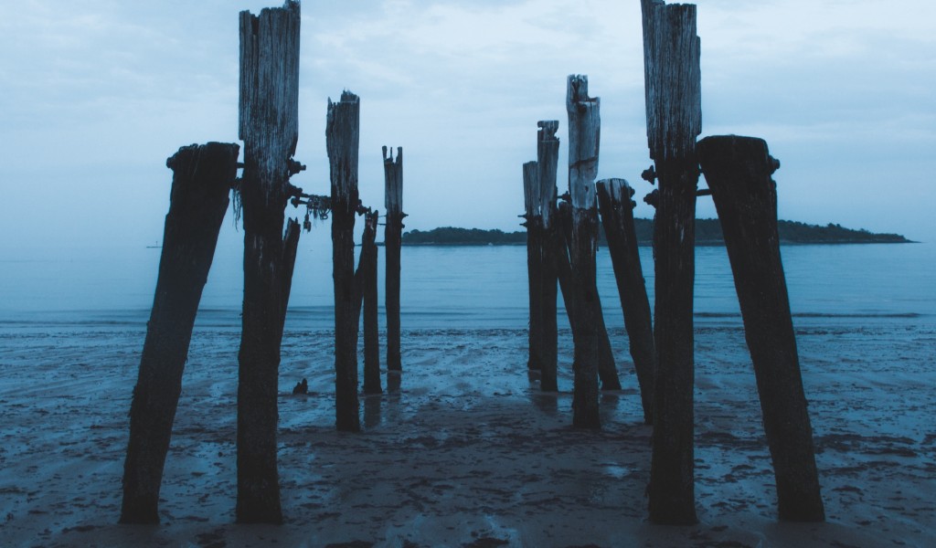 Pier ruins during night HD Wallpaper - 1024x600