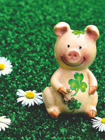 Pig doll sitting at the grass HD Wallpaper - 360x480