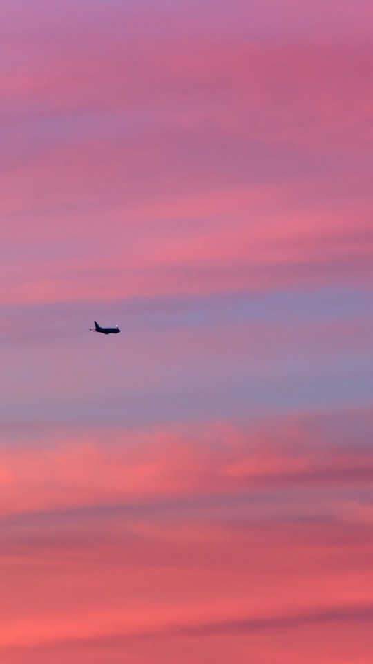Plane flying over a pink sky HD Wallpaper - 540x960