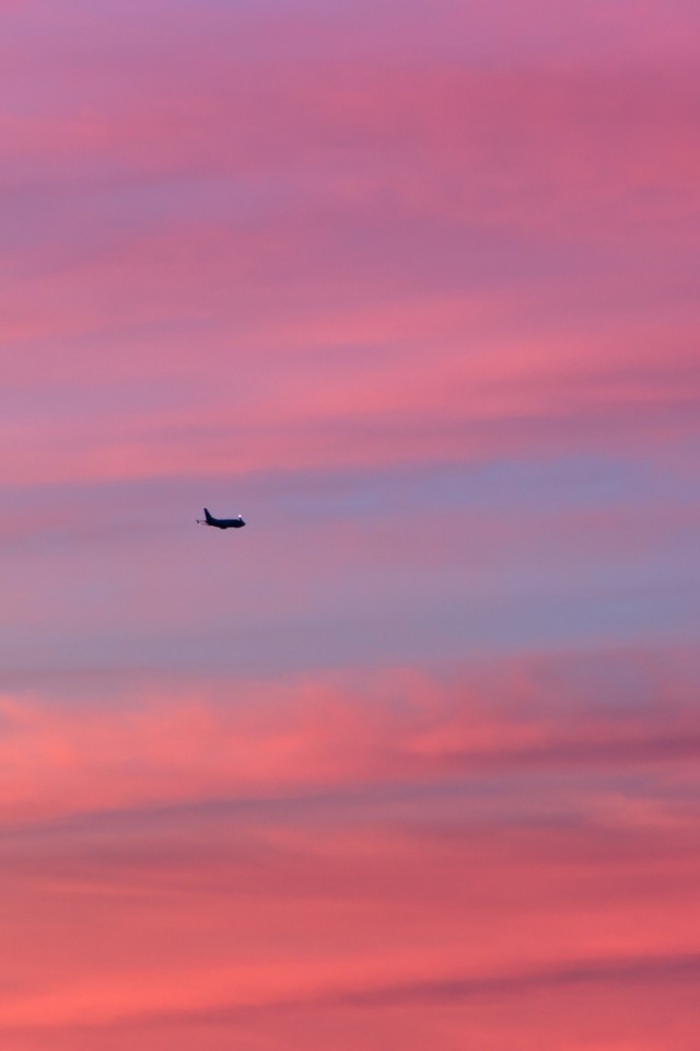 Plane flying over a pink sky HD Wallpaper - iPhone 4 / 4S / iPod