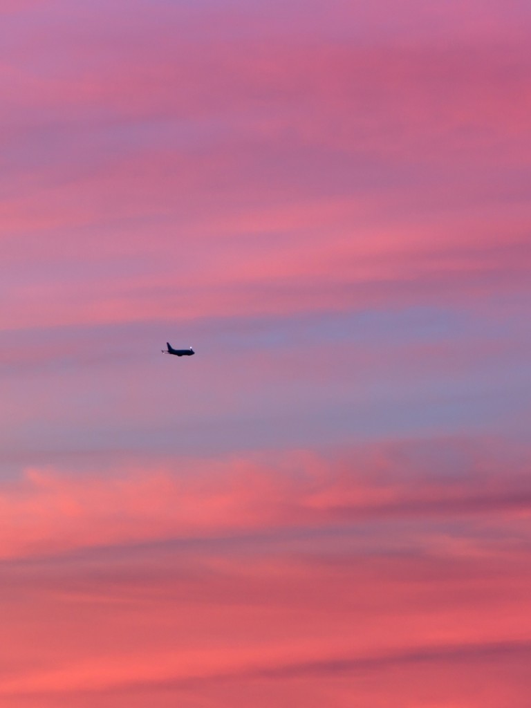 Plane flying over a pink sky HD Wallpaper - Non-retina iPad