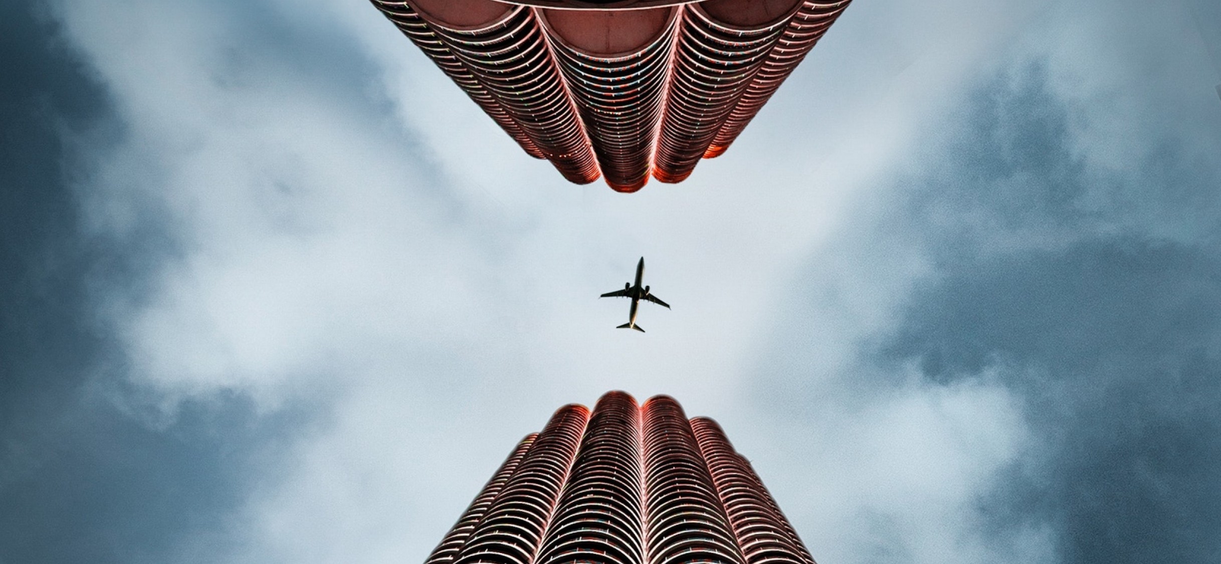 Plane flying over skyscapers HD Wallpaper - iPhone X