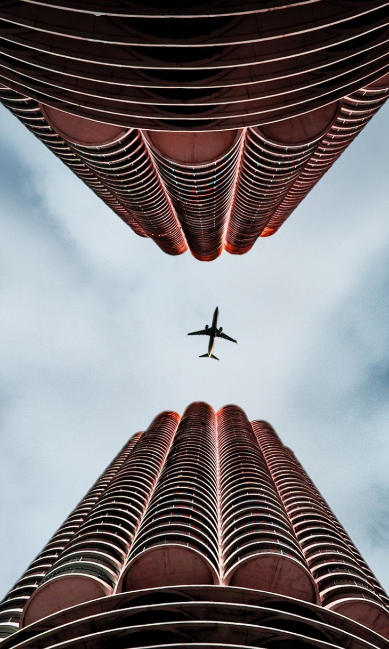 Plane flying over skyscapers HD Wallpaper - 768x1280