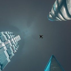 Plane flying over skyscrapers HD Wallpaper - Google Plus Profile Picture