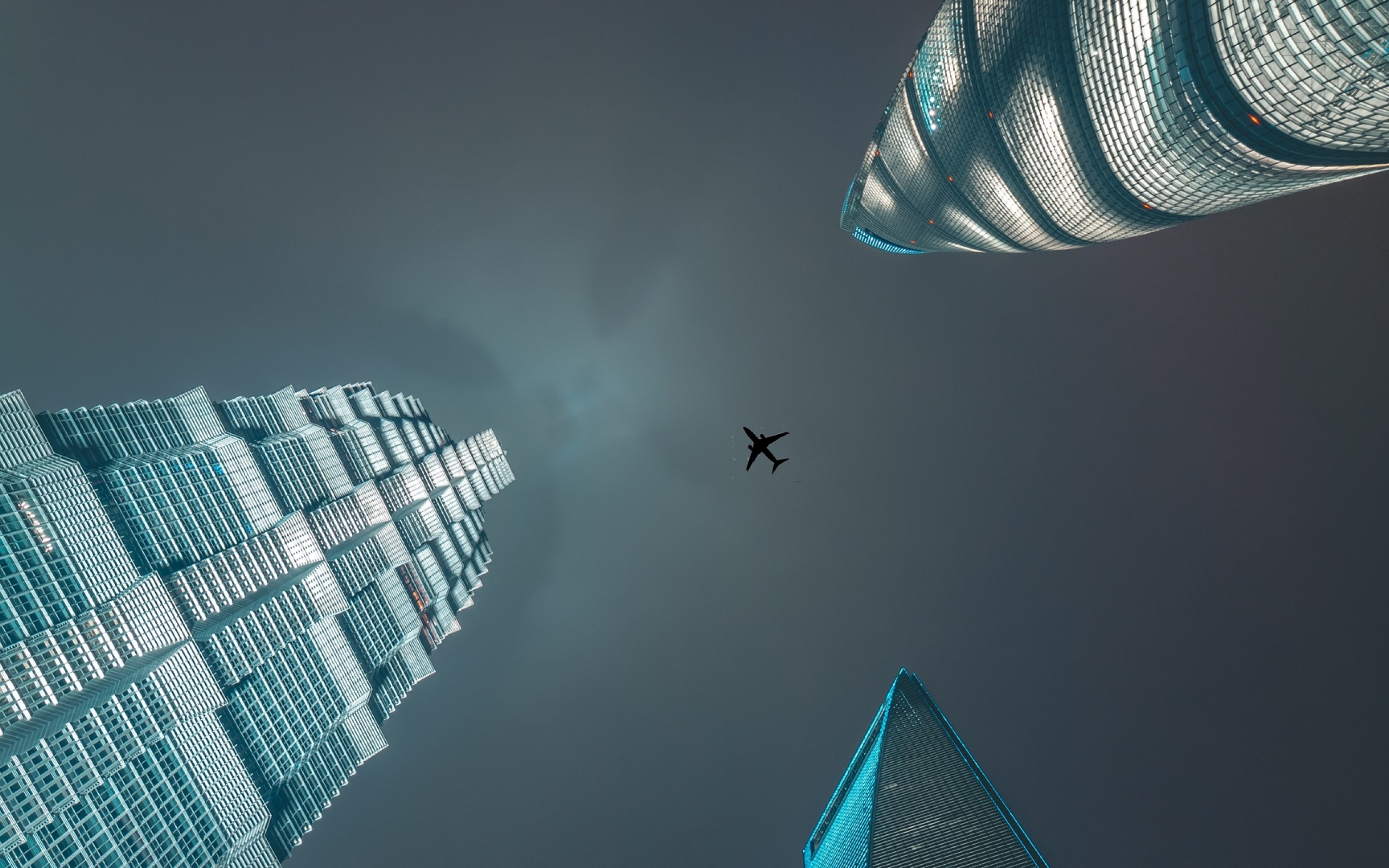 Plane flying over skyscrapers HD Wallpaper - 13" Retina Macbook Pro